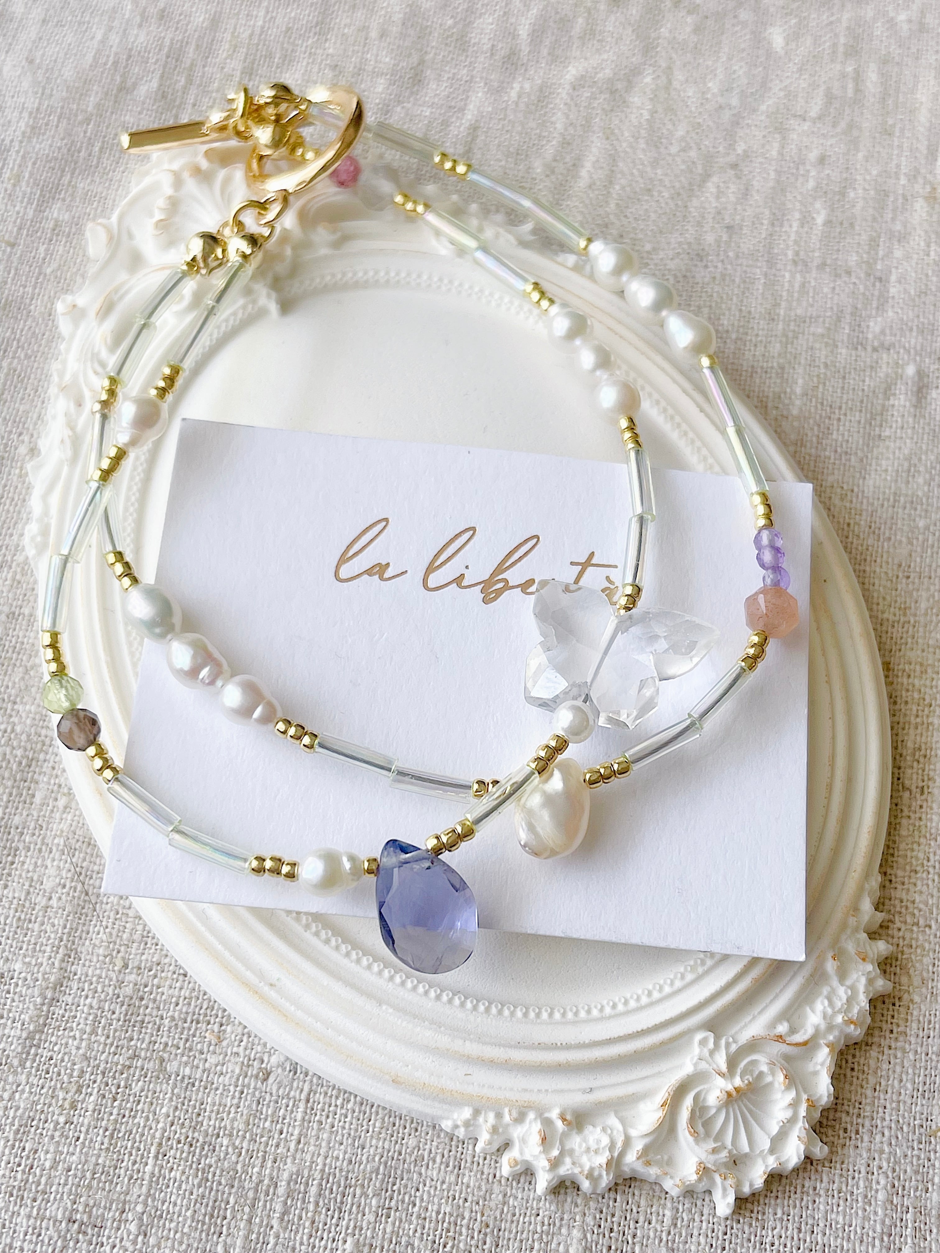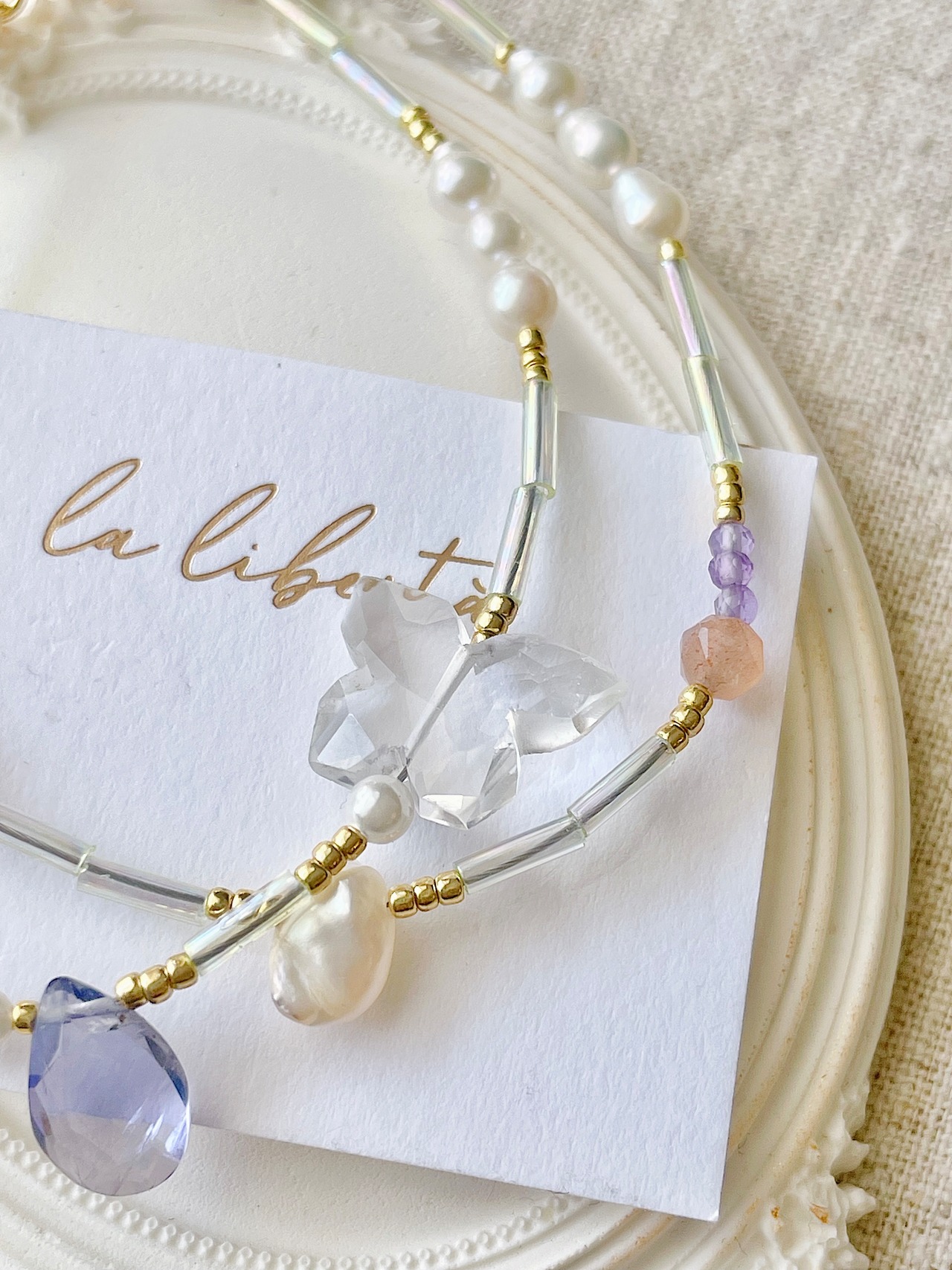 さりげなく色づく天然石たちが重なり合い、