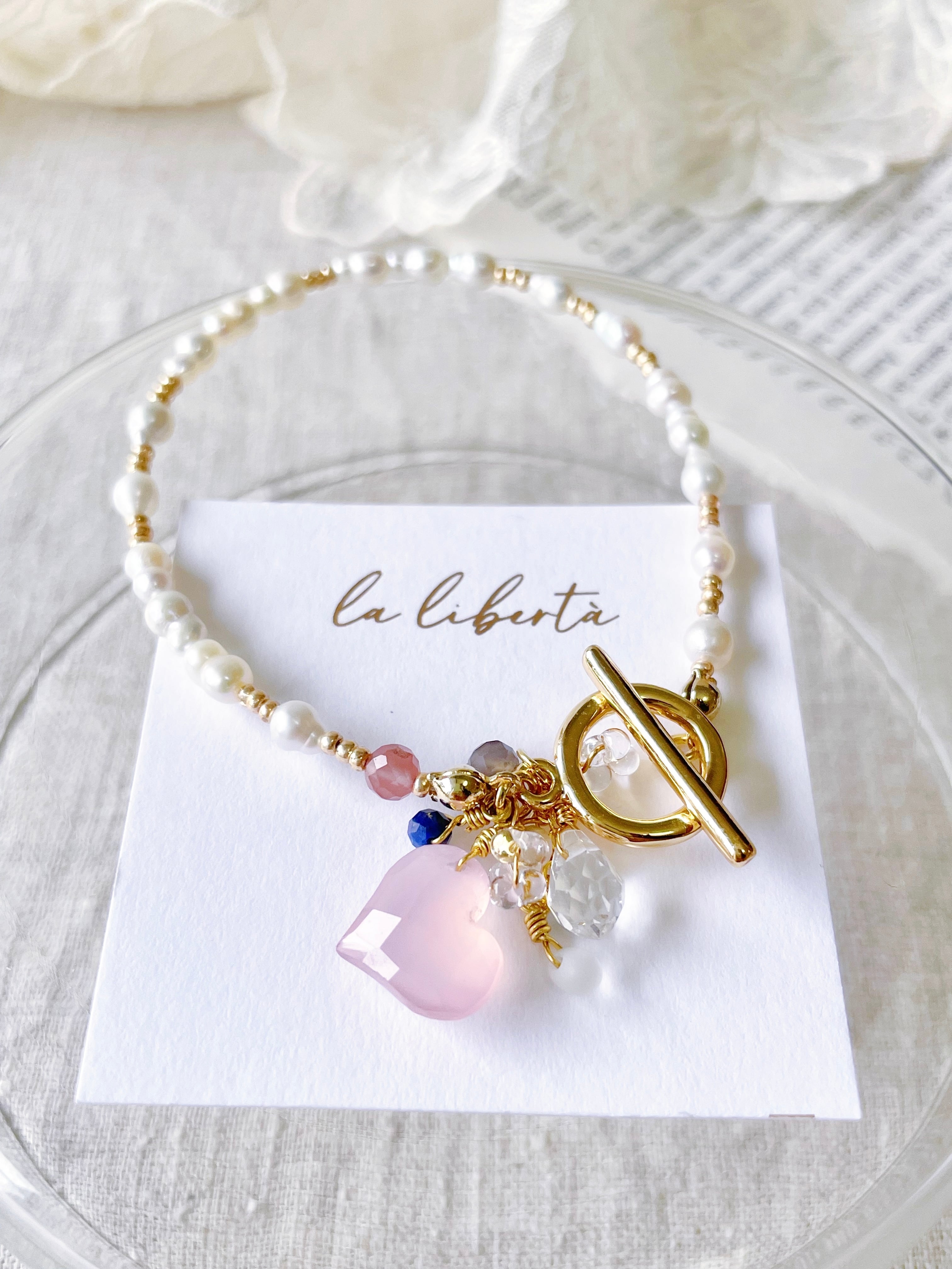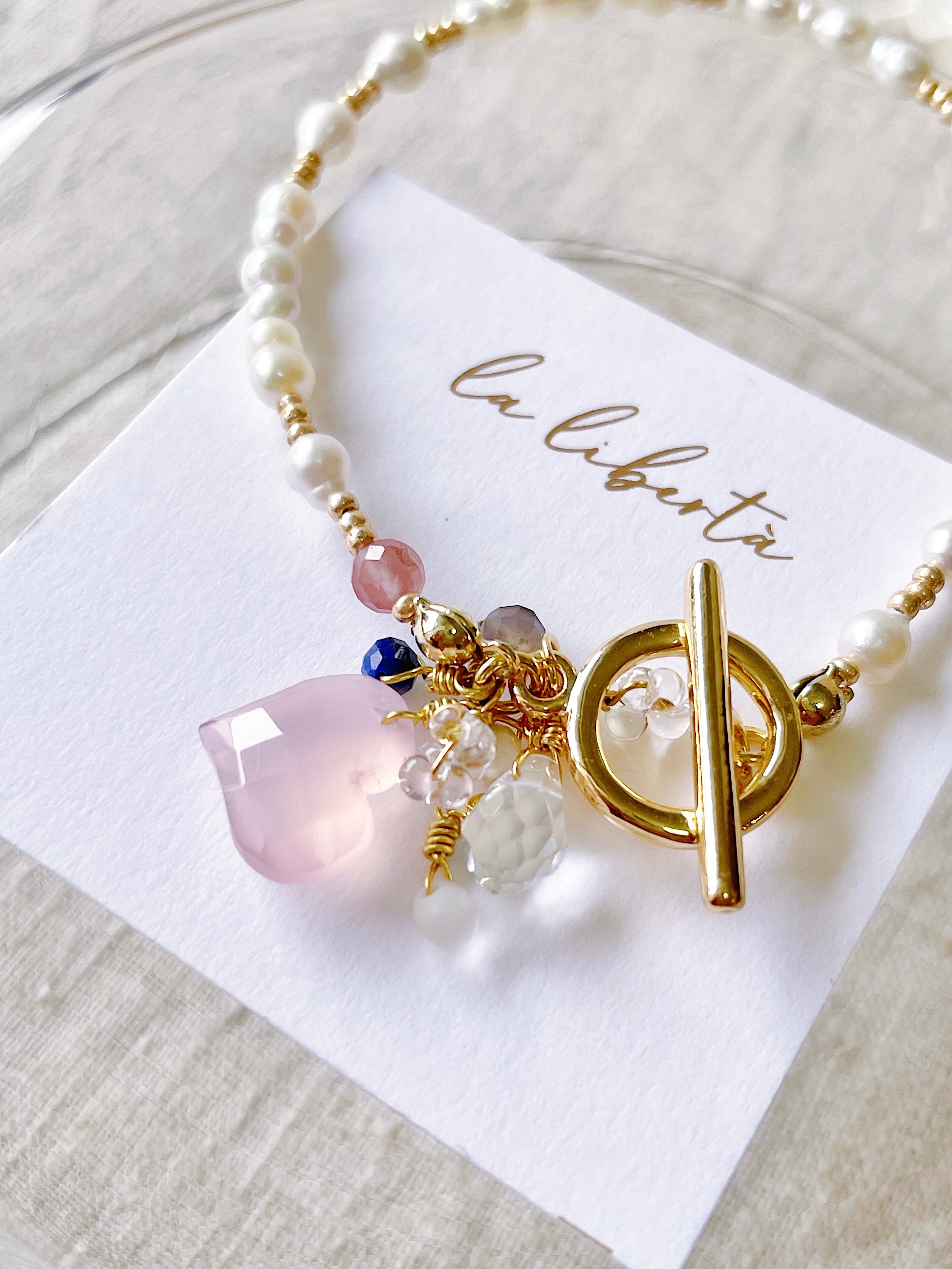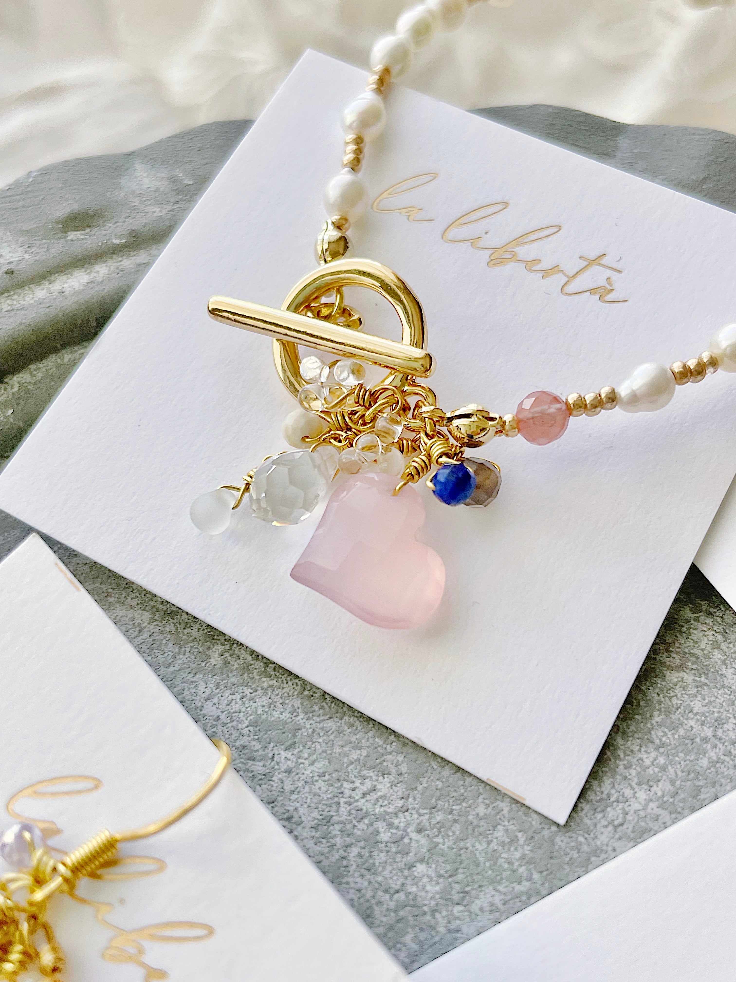 淡水パールと繊細な天然石を合わせ、